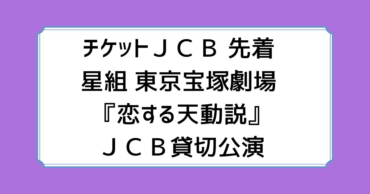 星組 東京宝塚劇場 『恋する天動説』JCB貸切公演の先着受付が10/11(土) チケットJCBであります。