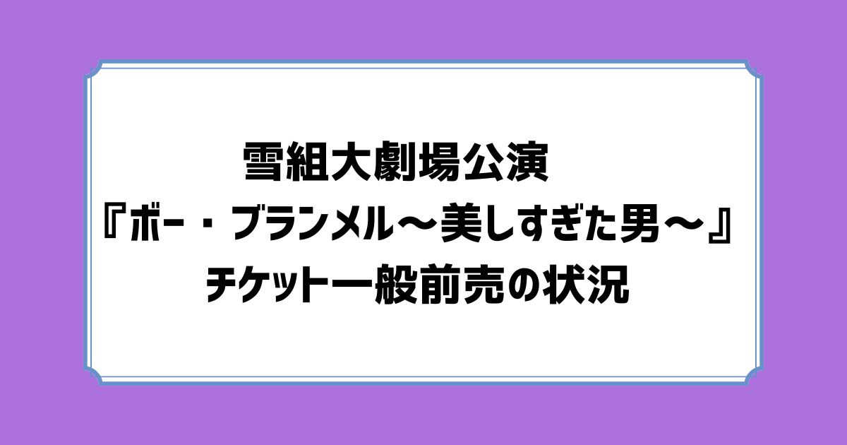 雪組大劇場公演 『ボー・ブランメル~美しすぎた男~』チケット一般前売の状況